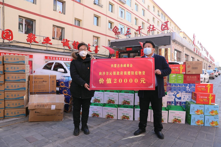 北疆新聞網(wǎng)、北疆新聞APP、北疆云消息(記者 張楊)2月26日下午,由呼和浩特市政協(xié)、呼和浩特市政協(xié)文化文史和學(xué)習(xí)委員會(huì)倡議,內(nèi)蒙古赤峰商會(huì)發(fā)起的抗疫物資捐贈(zèng),在呼和浩特市賽罕區(qū)烏蘭察布街道辦事處三干社區(qū)舉行。內(nèi)蒙古赤峰商會(huì)攜會(huì)員企業(yè),向呼和浩特市賽罕區(qū)金隅社區(qū)、錦泰榕城社區(qū)、三干社區(qū)和沙爾沁鎮(zhèn)政府捐贈(zèng)了價(jià)值10萬元的抗疫急需物資,助力呼和浩特市一線抗疫。