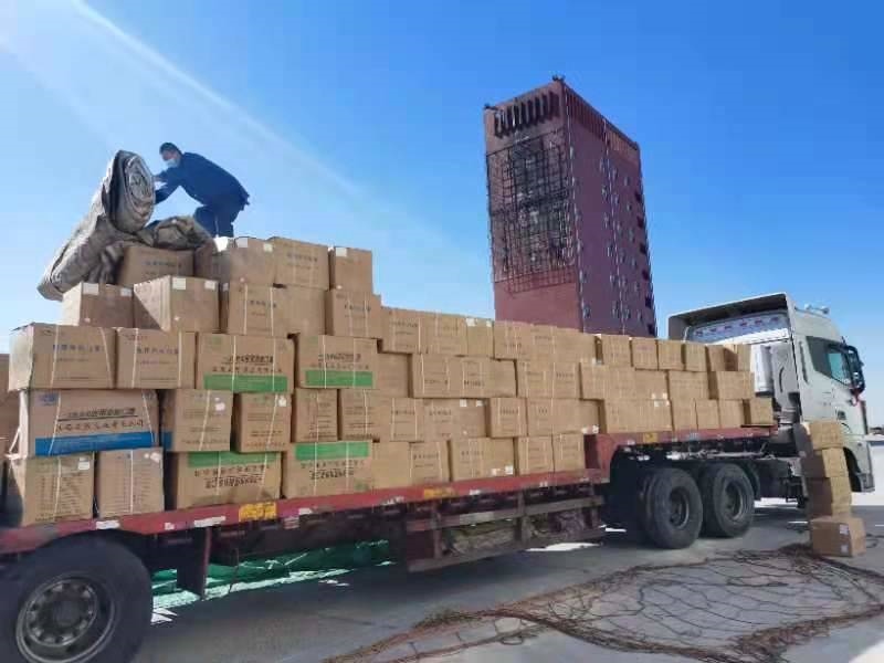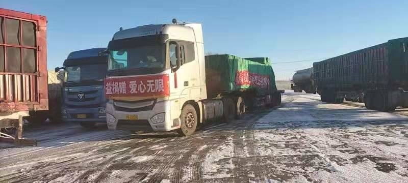 3月1日清晨,錫林郭勒盟至呼和浩特的后山地區(qū)飄著小雪,氣溫在零下10度以下,但是,風(fēng)雪擋不住來自錫林郭勒大草原的一片片愛。一輛17米帶掛卡車長驅(qū)千里十多小時,帶著錫林郭勒大草原的問候,連夜運輸?shù)胶艉秃铺兀粸樵琰c送達100萬只一次性醫(yī)用外科口罩。這輛卡車上掛著內(nèi)容為“祝青城人民早日戰(zhàn)勝疫情,錫盟公益助力呼和浩特市”和“洶洶疫情不可怕,齊心協(xié)力戰(zhàn)勝它”的條幅,表達“中國馬都”向“中國乳都”的真切問候。