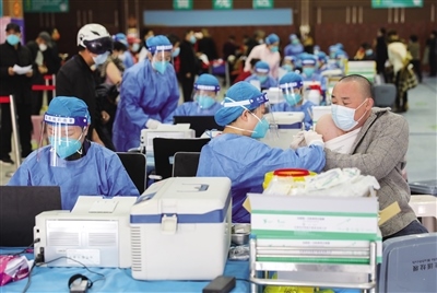 在接種臺(tái)前,醫(yī)護(hù)人員分工明確,核驗(yàn)接種人群身份信息、詢問(wèn)病史和疫苗接種情況,每個(gè)環(huán)節(jié)有條不紊地進(jìn)行著。