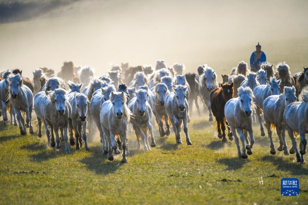 初夏時節(jié),內(nèi)蒙古錫林郭勒盟西烏珠穆沁旗的草原開始返青。當(dāng)?shù)啬撩褛s著馬匹,來到草原上馴馬,景象壯觀。