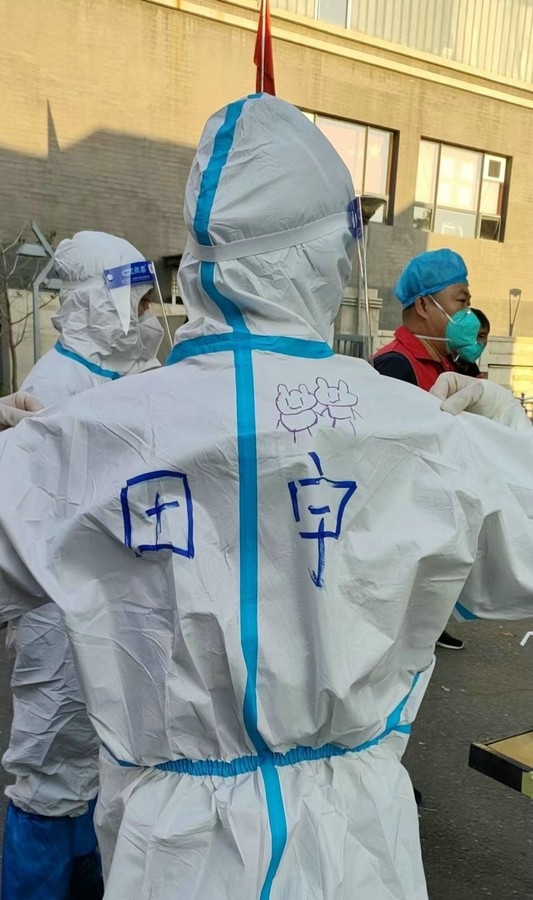 呼和浩特的深秋,夜涼如水,脫去防護(hù)服的她來不及換上厚衣服,她只好將未使用的垃圾袋披在身上保暖。