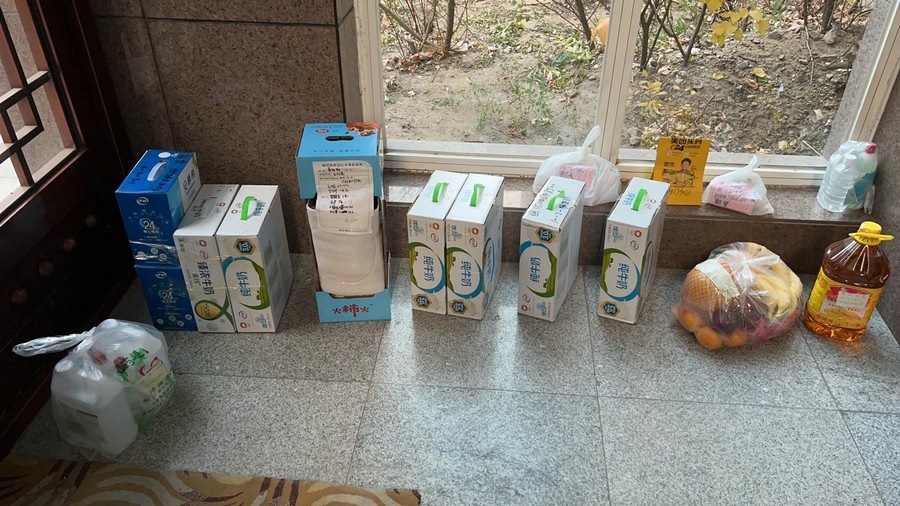 為了避免鄰居們錯(cuò)拿或少拿物資,每天把物資搬運(yùn)回單元門廳后,都會(huì)一一拍照標(biāo)記戶號(hào)后發(fā)在居民微信群里,暖心地提醒鄰居們領(lǐng)取物資時(shí)一定要做好防護(hù),消殺到位。