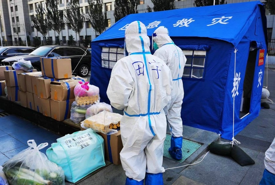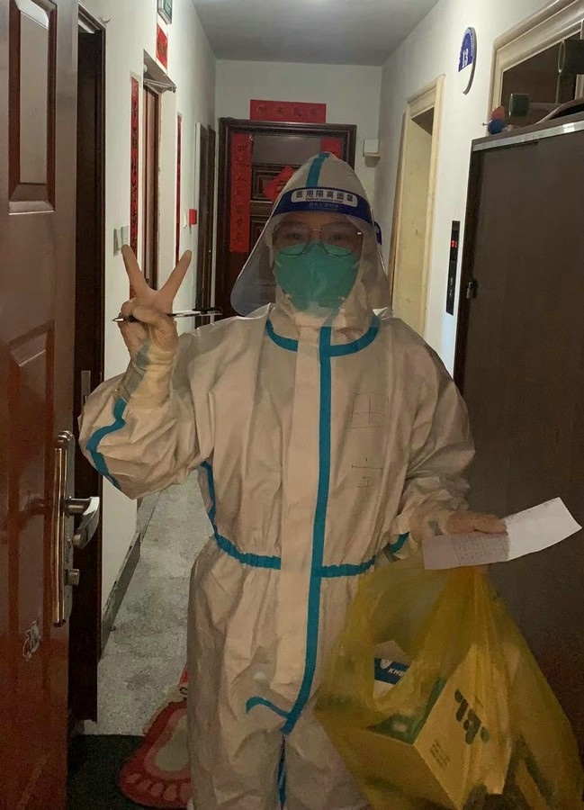 即使單元出現(xiàn)陽性病例,田宇依舊穿著防護(hù)服,佩戴好口罩,第一時(shí)間將物資運(yùn)送到位。有時(shí)物資集中配送,田宇需要往返多次搬運(yùn)大量的物資。有時(shí)鄰居填錯(cuò)地址,還需要到別的居民樓幫忙找尋。但她從未有過一句怨言,面對(duì)鄰居們的感謝和贊揚(yáng),她總是憨厚地和大家說“不要客氣”。當(dāng)鄰居們因?yàn)樾^(qū)的封控管理或物資短缺產(chǎn)生焦慮或不滿時(shí),她也會(huì)在第一時(shí)間解釋說明,疏導(dǎo)大家的情緒。