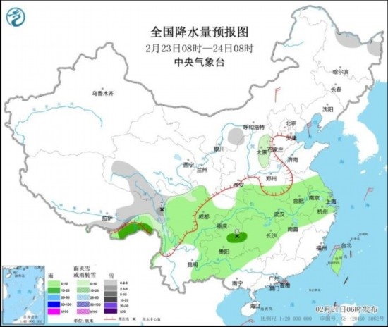 2月23日08時(shí)至24日08時(shí),西藏東部、青海南部、山西東部、黑龍江北部等地部分地區(qū)有小到中雪或雨夾雪,西藏東部等地局地有大雪。西南地區(qū)東部、江南西部和北部、江漢、江淮等地部分地區(qū)有小雨。內(nèi)蒙古中部等地部分地區(qū)有4~5級(jí)風(fēng)。
