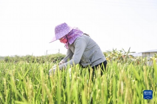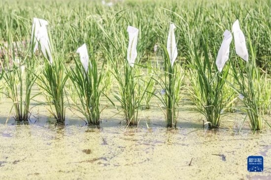 這是2月22日在海南三亞的國(guó)家南繁科研育種基地拍攝的已完成雜交實(shí)驗(yàn)的水稻。