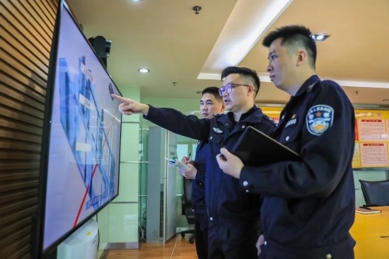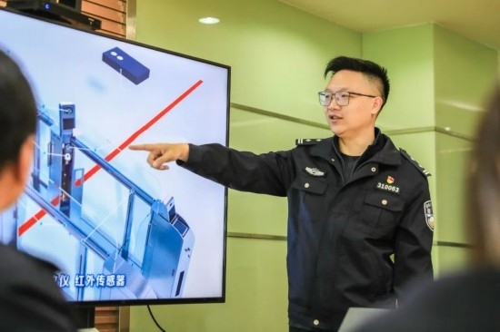 圖為歐陽軒乾為同事講解“三道門”查驗模式工作原理。