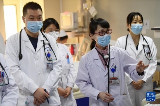 3月6日,馬娜(右二)和同事在病房內查房。
