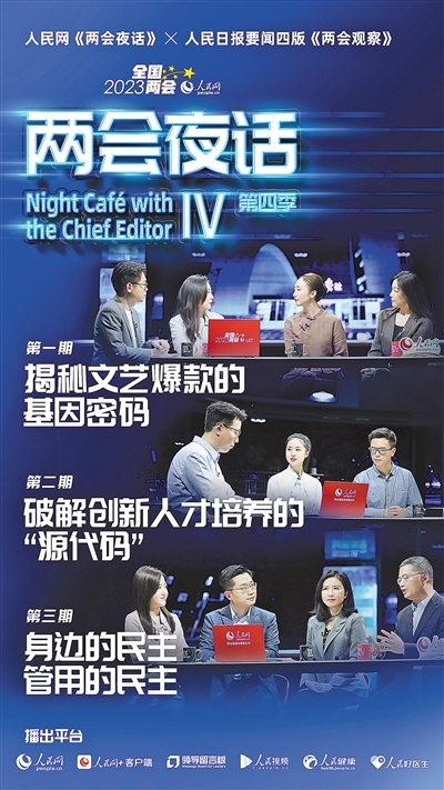人民日報(bào)社總編室和人民網(wǎng)合作推出“兩會(huì)觀察”“兩會(huì)夜話”對話類融媒體欄目,邀請代表委員與專家學(xué)者、一線工作者交流互動(dòng),談履職、話體會(huì)?!皟蓵?huì)觀察”欄目在人民日報(bào)要聞版推出,以深度采訪和“觀察手記”形式解讀熱點(diǎn)、回應(yīng)關(guān)切。人民網(wǎng)“兩會(huì)夜話”欄目同步推出視頻,與版面文字報(bào)道相得益彰,視頻播放量超4200萬次。