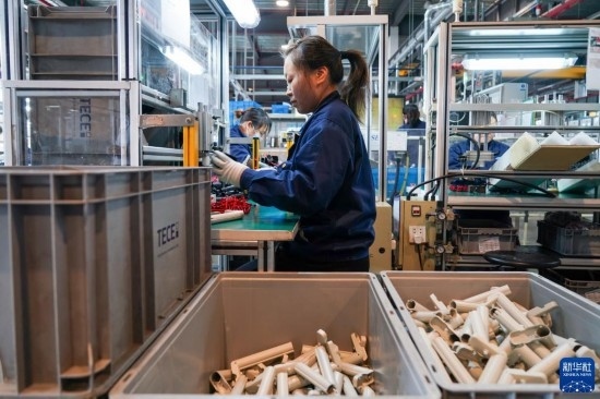 工人在位于太倉市高新區(qū)的威爾斯新材料(太倉)有限公司生產(chǎn)車間內(nèi)進行加工作業(yè)(3月16日攝)。