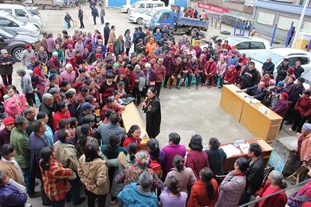 忠縣法院法官在巡回審理結(jié)束后為旁聽群眾答疑解惑。