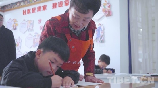 “這一筆要拉長(zhǎng),再拉長(zhǎng),對(duì)不對(duì)!”操著一口四川話(huà)的張惠英老人一邊把著孩子的手寫(xiě)字,一邊微笑耐心地講解。在吉福社區(qū)的一間教室里,十來(lái)個(gè)孩子正在認(rèn)真地練寫(xiě)漢字筆畫(huà),而教他們書(shū)寫(xiě)的張惠英并不是真正的教師,而是孩子們的“共享奶奶”。