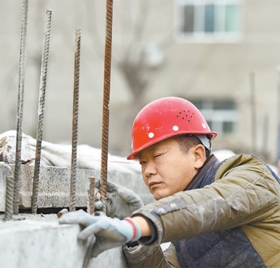 劉玉華在吊線找直。王光華攝(人民視覺)