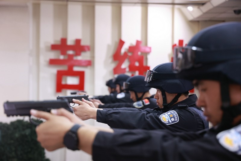 “驗槍,上彈匣,開始射擊!”隨著現(xiàn)場指揮員的口令,密集的槍聲響徹地下靶場。對于特警而言,精度射擊是日?;A(chǔ)訓練,相比其他警種,他們需要完成兩種以上武器的精度射擊訓練,在技巧和精準層面要求更高。同時,本次集訓更增加了戰(zhàn)術(shù)攻防應用射擊,攻防雙方以小組作戰(zhàn)的形式,在模擬場景中圍繞劫持人質(zhì)、武裝對抗等警情開展對抗。小組成員們密切配合,采取戰(zhàn)術(shù)動作對房間內(nèi)的嫌疑人進行武力攻擊,對發(fā)現(xiàn)的人質(zhì)予以保護,擊斃嫌疑人、解救人質(zhì)。通過多輪次的攻防互換,特警隊員們的臨戰(zhàn)心理、戰(zhàn)斗意識和突擊攻堅戰(zhàn)術(shù)有了顯著增強,更進一步提高了團隊協(xié)作能力。