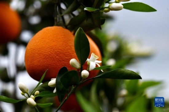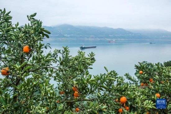眼下,有“中國臍橙之鄉(xiāng)”美譽的三峽庫區(qū)湖北省秭歸縣長江兩岸橙花盛開,晚熟臍橙掛滿枝頭,花果同樹的橙樹與峽江景觀相映如畫。