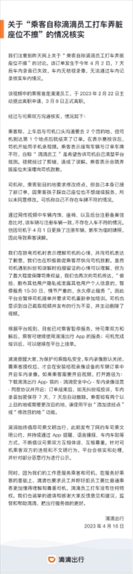 ·滴滴回應(yīng)前員工打車弄臟座位不擦:已對乘客暫停服務(wù)。