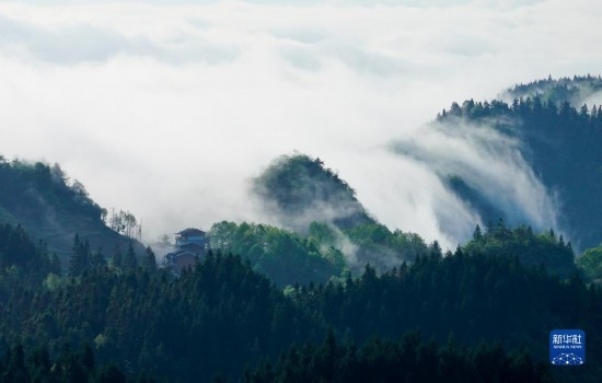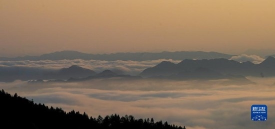 當日,位于重慶市南川區(qū)的世界自然遺產(chǎn)地金佛山雨后放晴,山間升騰起的水汽匯聚成云海在山巒之間流淌,美不勝收。