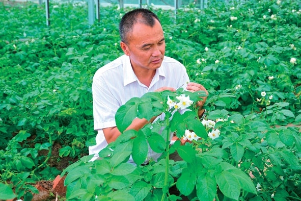 在青藏高原工作近40年,年近六旬的王艦帶領(lǐng)團(tuán)隊培育的“青薯”系列馬鈴薯品種得到大面積推廣。這些耐旱高產(chǎn)品種,抗病性強,據(jù)統(tǒng)計可使每畝增產(chǎn)25%至50%,增收300元到400元,成為農(nóng)民脫貧致富的“金豆豆”。
