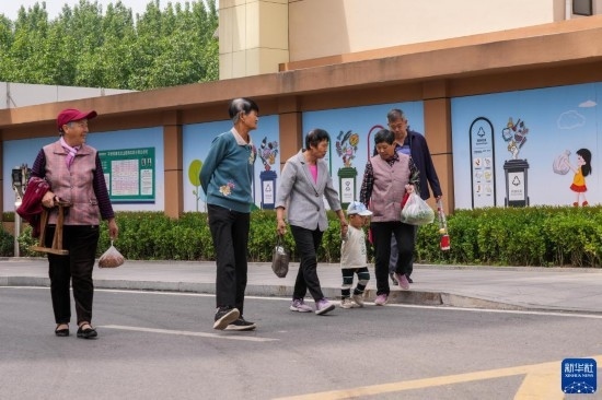 5月12日,北汝村居民在環(huán)境整潔的安置小區(qū)內散步。
