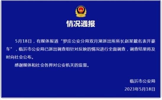 ·網(wǎng)傳山東省臨沂市羅莊區(qū)雙月湖派出所所長(zhǎng)趙某戴名表、開(kāi)豪車(chē)一事引發(fā)關(guān)注,臨沂市公安局發(fā)布情況通報(bào)。