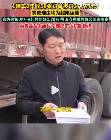 ·官方通報(bào)“貨車(chē)2年被罰27.5萬(wàn)”:執(zhí)行6起共罰款2.79萬(wàn),內(nèi)黃縣從未給執(zhí)法部門(mén)下達(dá)罰款指標(biāo)。