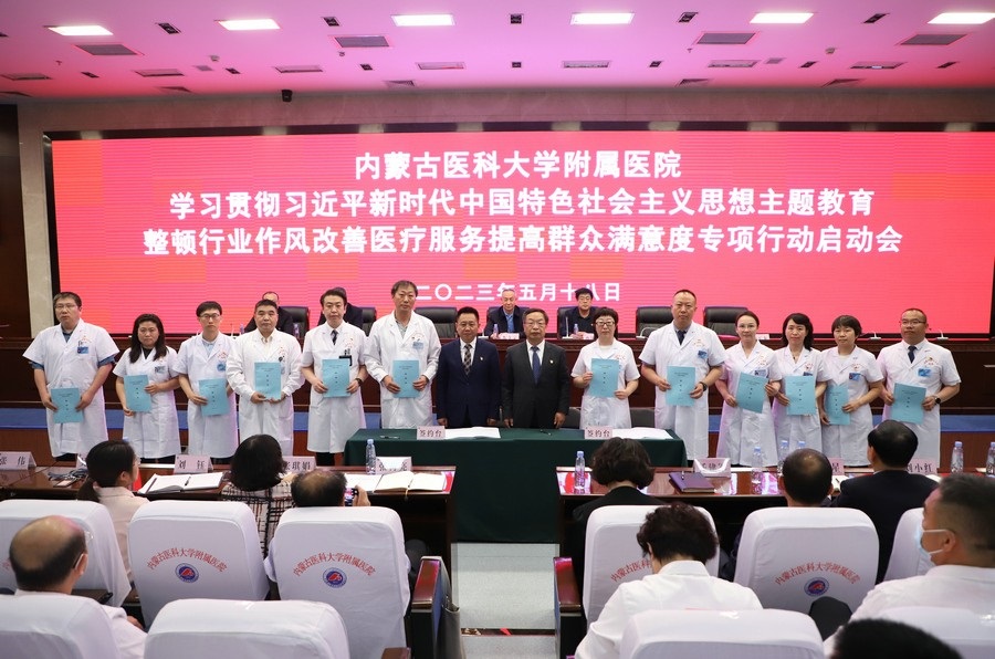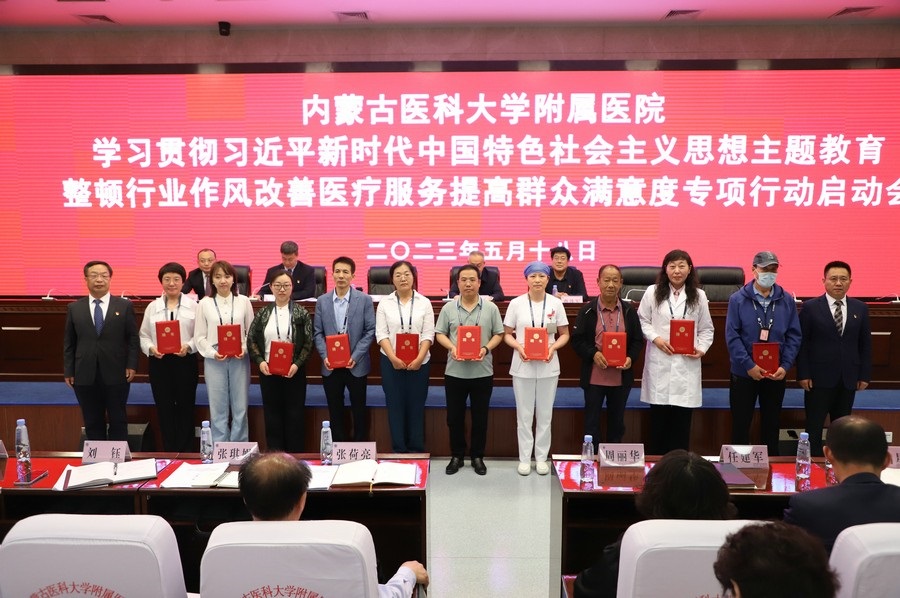 啟動(dòng)會(huì)上,內(nèi)蒙古醫(yī)科大學(xué)黨委委員、附屬醫(yī)院黨委書記張立東,醫(yī)院黨委委員、紀(jì)委書記劉玉龍與專項(xiàng)行動(dòng)工作小組組長簽訂責(zé)任狀,并為10名社會(huì)監(jiān)督員頒發(fā)聘書。