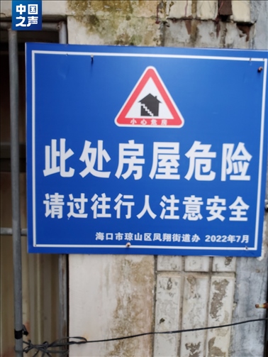 中國之聲報道播出當天上午,瓊山區(qū)多個職能部門來到這棟樓下,安置仍居住在內的居民。