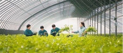 萊蕪職業(yè)技術學院師生在萊蕪區(qū)苗山鎮(zhèn)田家樓村的白花丹參種植基地查看種苗情況。趙樹宴攝