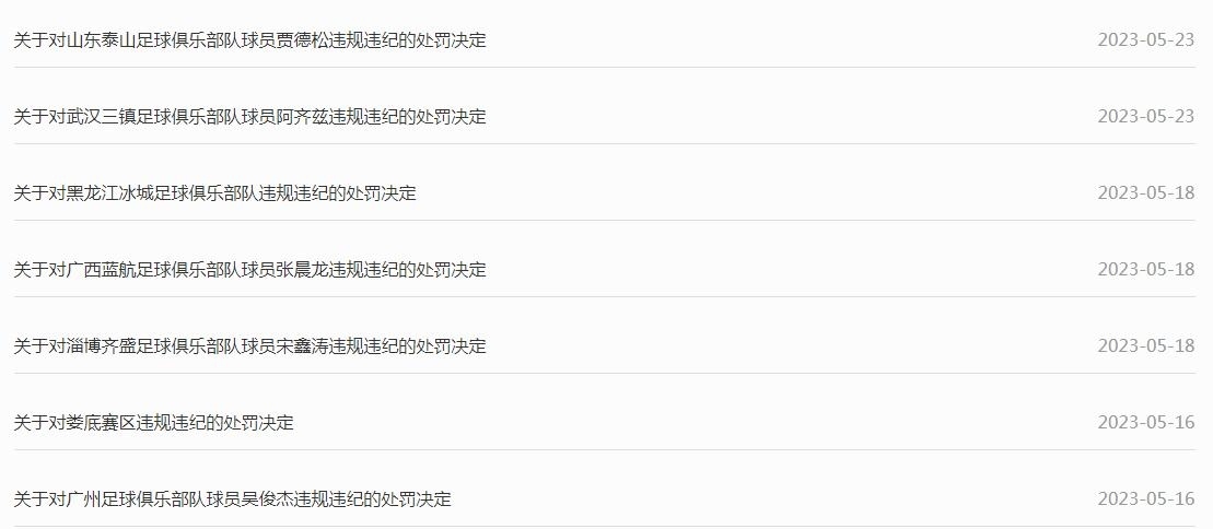 處罰公告。圖片來源:中國足協(xié)網(wǎng)站