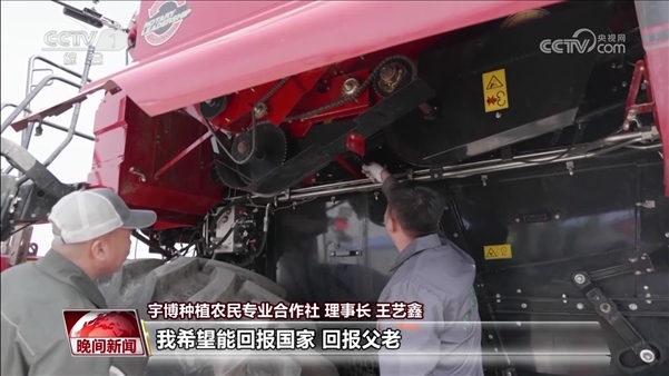 宇博種植農(nóng)民專業(yè)合作社 理事長 王藝鑫:我就和父母說了我的想法,父母也非常了解當時農(nóng)業(yè)的形勢,也都挺同意我的想法的。因為現(xiàn)在有很多新型的種地方式和新型農(nóng)機具,年輕人可以研究研究這個新型種地方式,這樣也能使這個糧食產(chǎn)量得到提高,這不也屬于為家鄉(xiāng)作貢獻嘛。