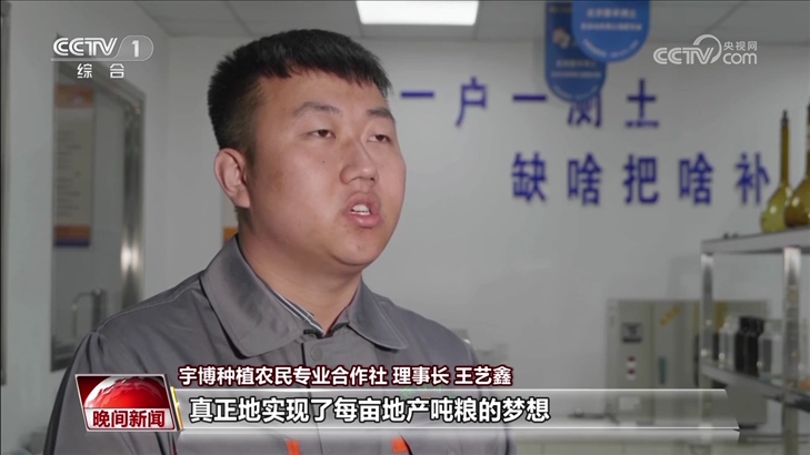 宇博種植農(nóng)民專業(yè)合作社 理事長 王藝鑫:農(nóng)民天然熱愛土地,與土地不可分離,只要是土地提高了一點產(chǎn)量,我都特別驕傲和自豪。作為新時代的農(nóng)村青年,我希望能回報國家,回報父老。
