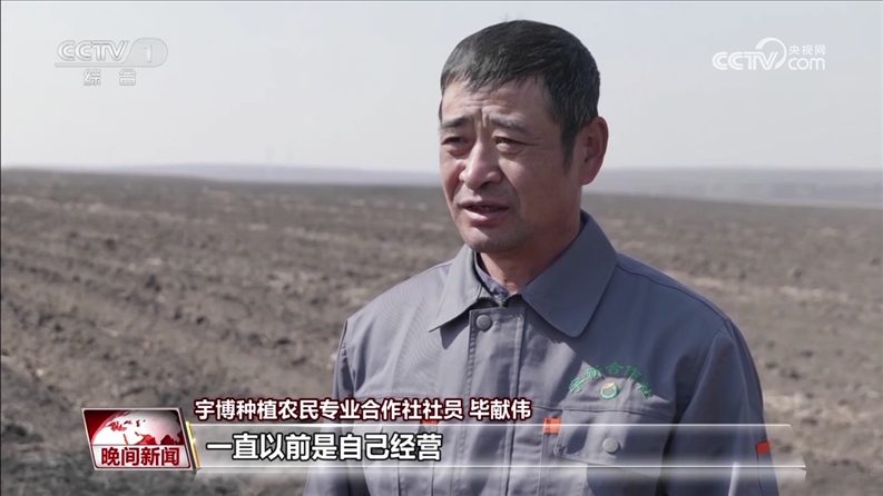 宇博種植農(nóng)民專業(yè)合作社社員 畢獻偉:我家有60畝地,一直以前是自己經(jīng)營,后期交給合作社托管以后,收益增加了不少。