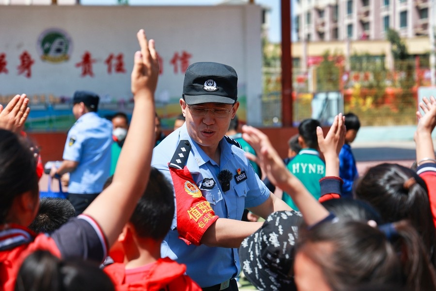 在校園里,民警針對(duì)學(xué)生們貪玩、好奇的心理,專門設(shè)計(jì)制作了卡通展板和宣傳冊(cè),并設(shè)置了互動(dòng)游戲和有獎(jiǎng)問(wèn)答環(huán)節(jié),提高萌娃們主動(dòng)參與和開(kāi)動(dòng)腦筋的積極性,進(jìn)而加深學(xué)習(xí)印象。