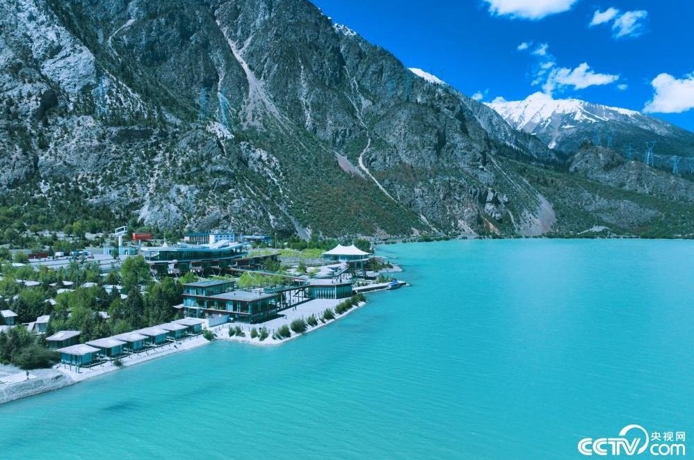 西藏昌都,然烏湖與雪山相映成景,湖面碧藍,氣勢壯闊。