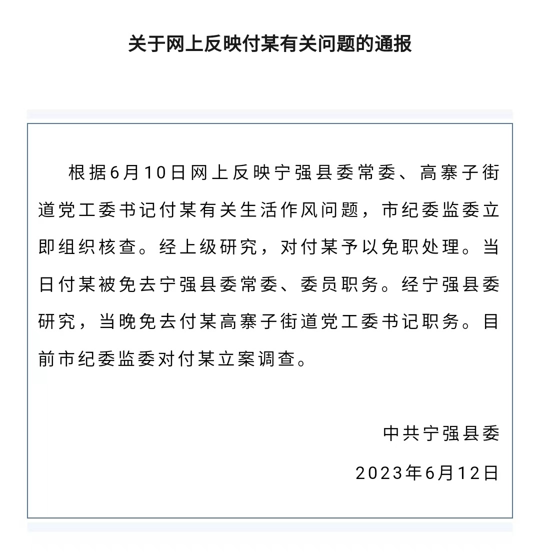 ·官員被舉報與女同事有不正當關(guān)系,陜西寧強:免職,立案調(diào)查。
