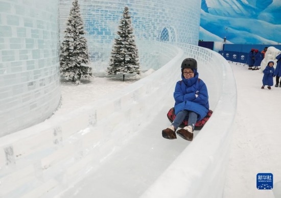 6月18日,小朋友在南通森迪冰雪樂園游玩。