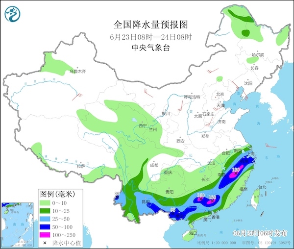 預計到25日,江南大部、華南等地將出現(xiàn)大范圍持續(xù)性強降雨過程。其中湖南南部、江西東北部、浙江西南部福建西北部、廣西東北部等地的部分地區(qū)有大暴雨,局地有特大暴雨,并伴有雷暴大風等強對流天氣,也需持續(xù)加強防范。