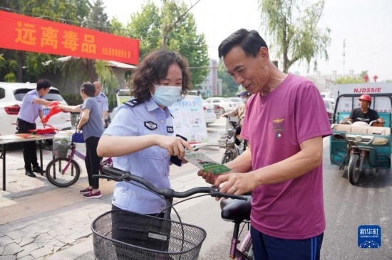6月25日,河北省邢臺市內(nèi)丘縣公安局禁毒中隊民警向群眾宣傳禁毒知識。