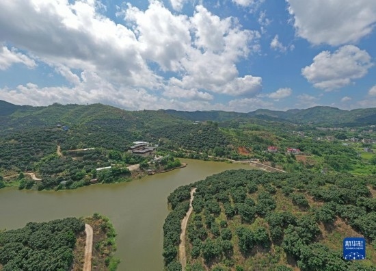 這是6月27日拍攝的廣西北流市北流鎮(zhèn)六行村的連片荔枝樹(無人機照片)。