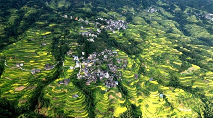 9月10日,無(wú)人機(jī)航拍的廣西三江侗族自治縣獨(dú)峒鎮(zhèn)的高山梯田秋色正濃,美如畫(huà)卷。