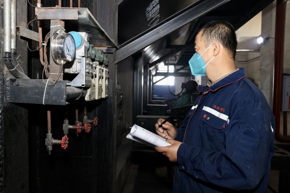 9月14日,工人在車間內(nèi)查看供熱參數(shù)。(漠河市委宣傳部供圖)