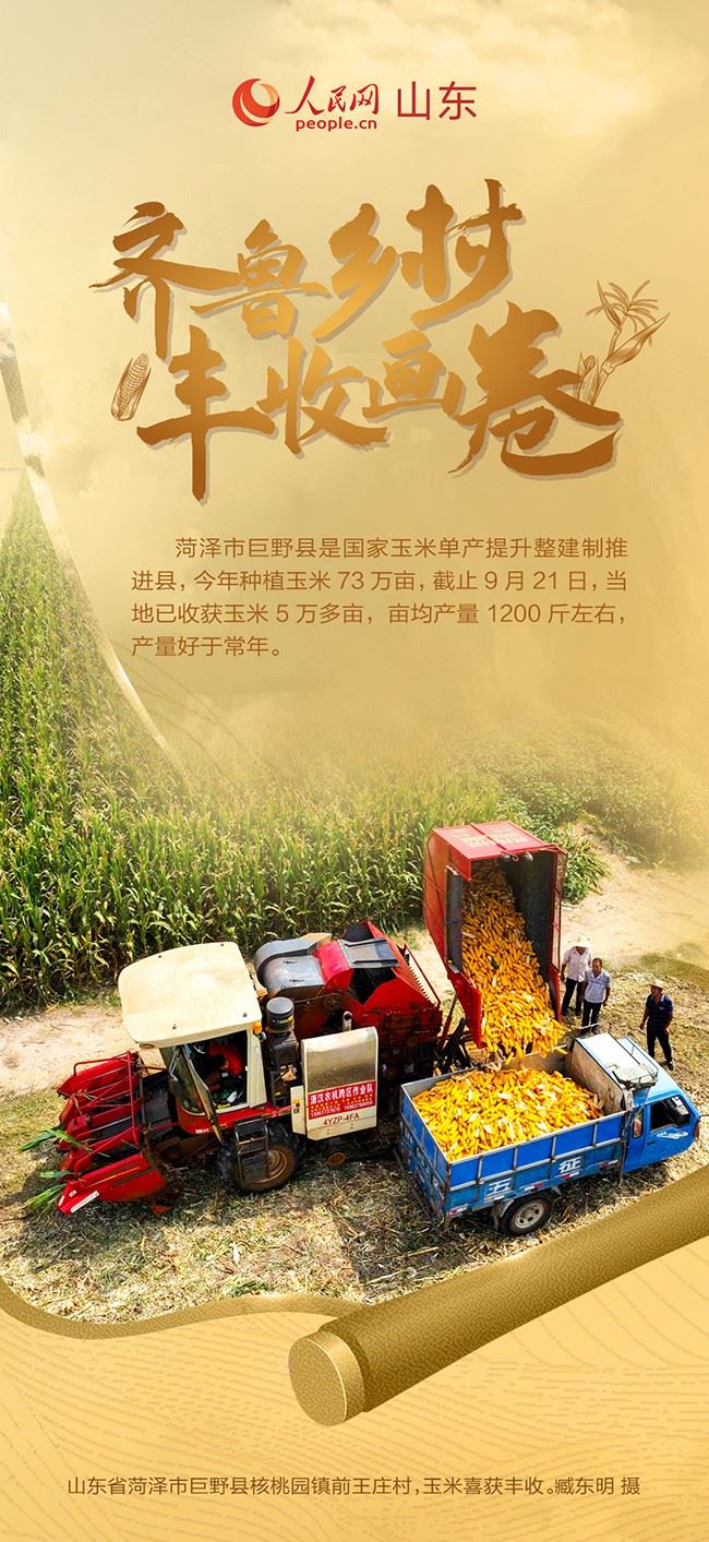 金秋九月,瓜果飄香谷滿倉,魚肥蝦跳蟹滿黃。第六個中國農(nóng)民豐收節(jié)如約而至,廣闊的齊魯大地處處好“豐”景。沉甸甸的谷子笑彎了腰、紅彤彤的蘋果掛滿枝頭、汗水在農(nóng)民的笑臉上閃著光、大型農(nóng)機設備忙碌穿梭著……各地農(nóng)民搶抓晴好天氣忙著搶收、搶曬,田間地頭中到處都是忙碌的身影,一幅鄉(xiāng)村振興的壯美畫卷正在齊魯大地徐徐展開。