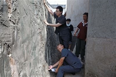 執(zhí)行干警與被執(zhí)行人確認界址。