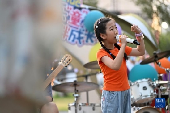 7月8日,小朋友在帳篷音樂(lè)會(huì)上表演節(jié)目。