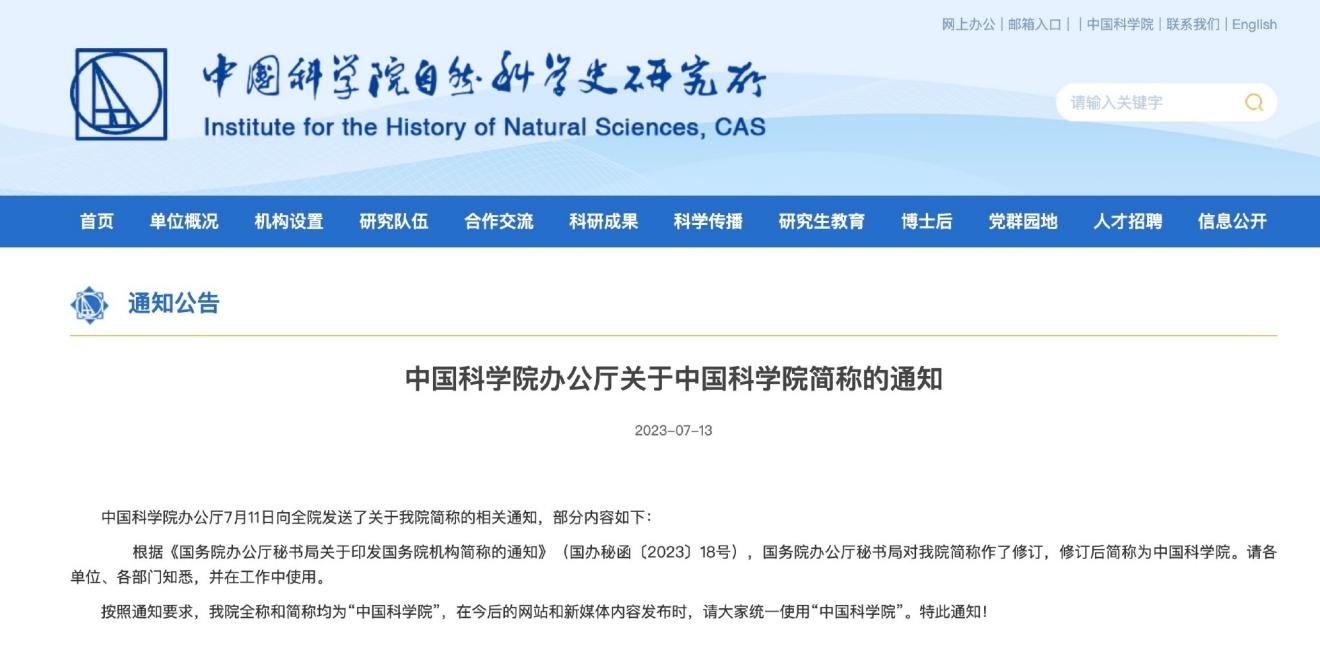 ·工作人員回應(yīng)中國(guó)科學(xué)院改簡(jiǎn)稱:保證統(tǒng)一性和規(guī)范性。