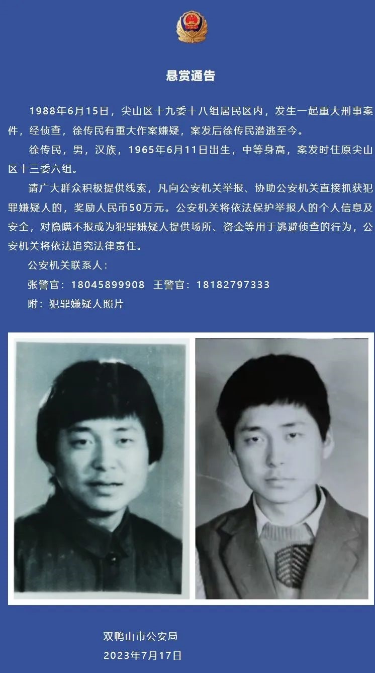 ·黑龍江警方懸賞50萬(wàn)抓捕35年前刑案嫌疑人:涉嫌殺害前妻及其父母,案發(fā)現(xiàn)場(chǎng)僅一歲孩子活著。