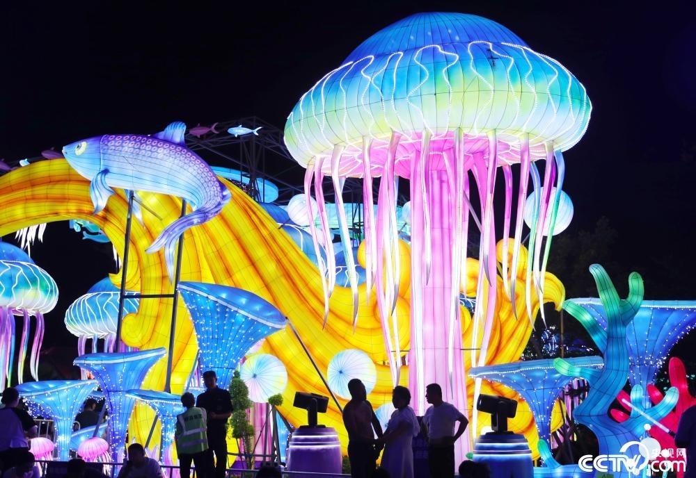 奇幻“海洋”彩燈點(diǎn)亮青島夜空。