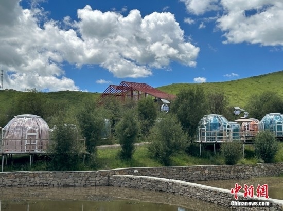 近年來(lái),紅原縣牦牛現(xiàn)代農(nóng)業(yè)園區(qū)堅(jiān)持牧旅融合發(fā)展,如今,供游客休閑的咖啡屋、星空房等設(shè)施正在如火如荼地建設(shè)中。圖為園區(qū)打造的星空房。