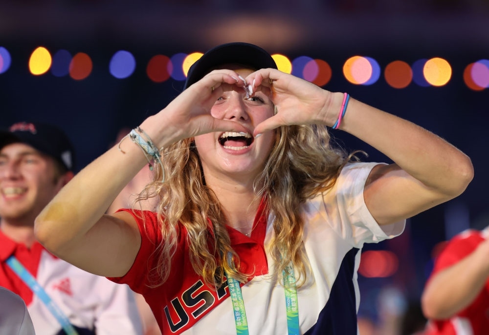 7月28日,美國大學(xué)生體育代表團(tuán)在開幕式上入場(chǎng)。新華社記者 楊青 攝