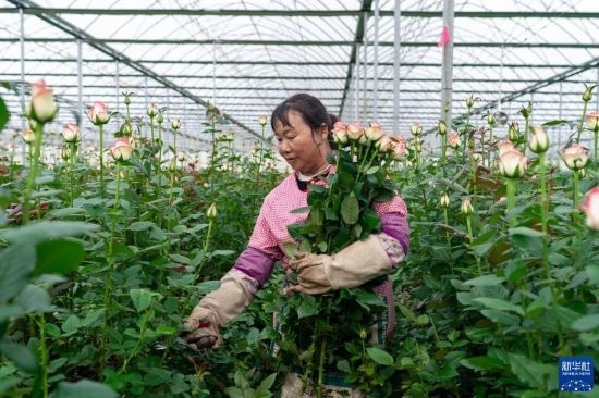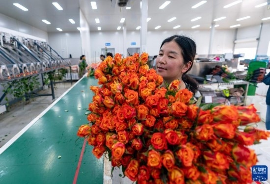 清晨,在云南省昆明市晉寧區(qū)云天化晉寧花卉產(chǎn)業(yè)現(xiàn)代化示范園內(nèi),品類各異的鮮花競相綻放,花農(nóng)們在現(xiàn)代化大棚里忙著采摘、搬運。云天化晉寧花卉產(chǎn)業(yè)現(xiàn)代化示范園是集育苗、智能溫室大棚、水肥一體化、無土綠色栽培、全程數(shù)字化管理系統(tǒng),以及鮮切花采后處理、預(yù)冷儲藏等為一體的高標準設(shè)施農(nóng)業(yè)產(chǎn)業(yè)園區(qū),年產(chǎn)鮮切花1.6億枝。