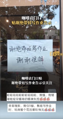 ·天津一咖啡店謝絕家長(zhǎng)帶娃寫(xiě)作業(yè):寫(xiě)作業(yè)易引起家長(zhǎng)和孩子情緒波動(dòng)。